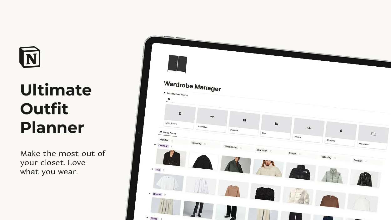 Are you tired of staring at a cluttered wardrobe every morning, struggling to put together a stylish outfit? It's time to elevate your style and take control of your wardrobe planning with the help of Notion templates. In this blog post, we will introduce you to three aesthetic Notion templates that will revolutionize the way you approach wardrobe planning. From capsule wardrobe planners to outfit builders and schedulers, these templates offer comprehensive solutions to your wardrobe woes. Get ready to curate a sleek and organized wardrobe that reflects your unique personal style. Let's dive in and discover how these Notion templates can transform your fashion game.